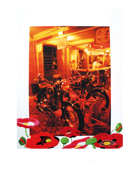 Die Serie wird ständig erweitert, sie entsteht auf Reisen und zeigt Brüche in der jeweiligen Kultur. Die Brüche werden durch die Stickerei entweder deutlicher gemacht oder ergänzt.