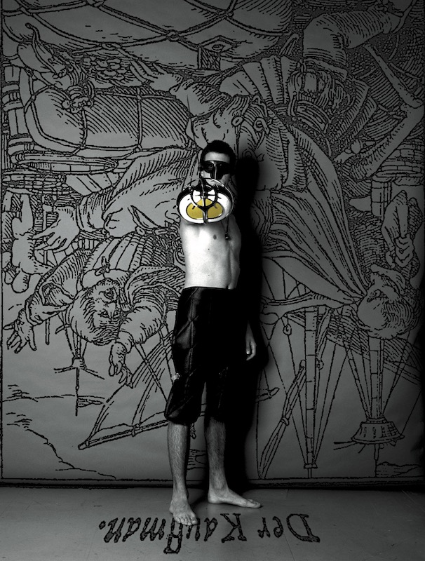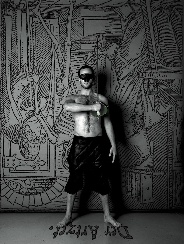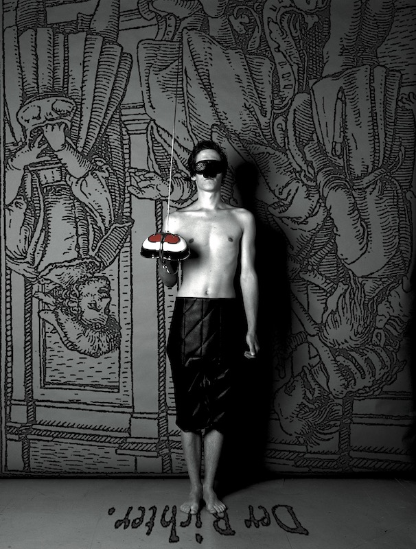 In der jüngsten Arbeit dieser Ausstellung mit dem Titel Bundesbrüder die hier zum erstenmal gezeigt wird, nimmt Beate Passow die schlagenden Verbindungen ins Visier. Fünf junge Männer angetan mit einem Augenschutz, der bizarr ihre Gesichter entstellt und umgürtet mit einem starren Lederschurz, der sie fast bewegungsunfähig macht, stehen mit dem Säbel in der Hand bereit zum absurden Kampf, allein um sich eine Blessur einzuholen. Ritterlichkeit wird zur Ehrensache und findet als Ritualhandlung im Verborgenen statt. Passow typisiert die schlagenden Bundesbrüder als Arzt, Kaufmann, Richter, König und Pfarrer. Es sind die klassischen Berufe und Stände, die die Gesellschaft beherrschen. In schwarzweißen Aufnahmen treten nur die Körbe an den Säbeln farbig in den klassischen Farben der Stände hervor. Die Hintergrundsfolie dieses eigentümlichen Tanzes der Jünglinge, denn sie nehmen bestimmte, ballettartige Posen ein, bildet eine auf dem Kopf stehende Holzschnittdarstellung Holbeins. Es ist ein Totentanz, der hier gitterhaft den Hintergrund verschließt und die Ritter wie in einem Spinngewebe einfängt. Diese Arbeit entstand nicht zuletzt vor dem Hintergrund, nachdem in jüngster Zeit bekannt wurde, welche engen Beziehungsgeflechte in hohen politischen Kreisen durch die Verbindungen herrschen und dass ferner in einigen Burschenschaften ein derart rechtsradikales Gedankengut dominiert, dass sogar Straftäter, politisch motivierte Schläger, vor dem Zugriff der Polizei versteckt wurden. Dieses Einfangen von Geschichte, die Typisierung der Repräsentanten, die ewigen Stützen der Gesellschaft rückt die Arbeit in die Nähe der Darstellungen von Otto Dix und George Grosz, von Josef Scharl und vielen anderen sozialkritischen Künstlern. Dass die Formulierungen hier mittels Photographie erfolgen, verleiht den Bildern einen hohen Grad an Unmittelbarkeit.